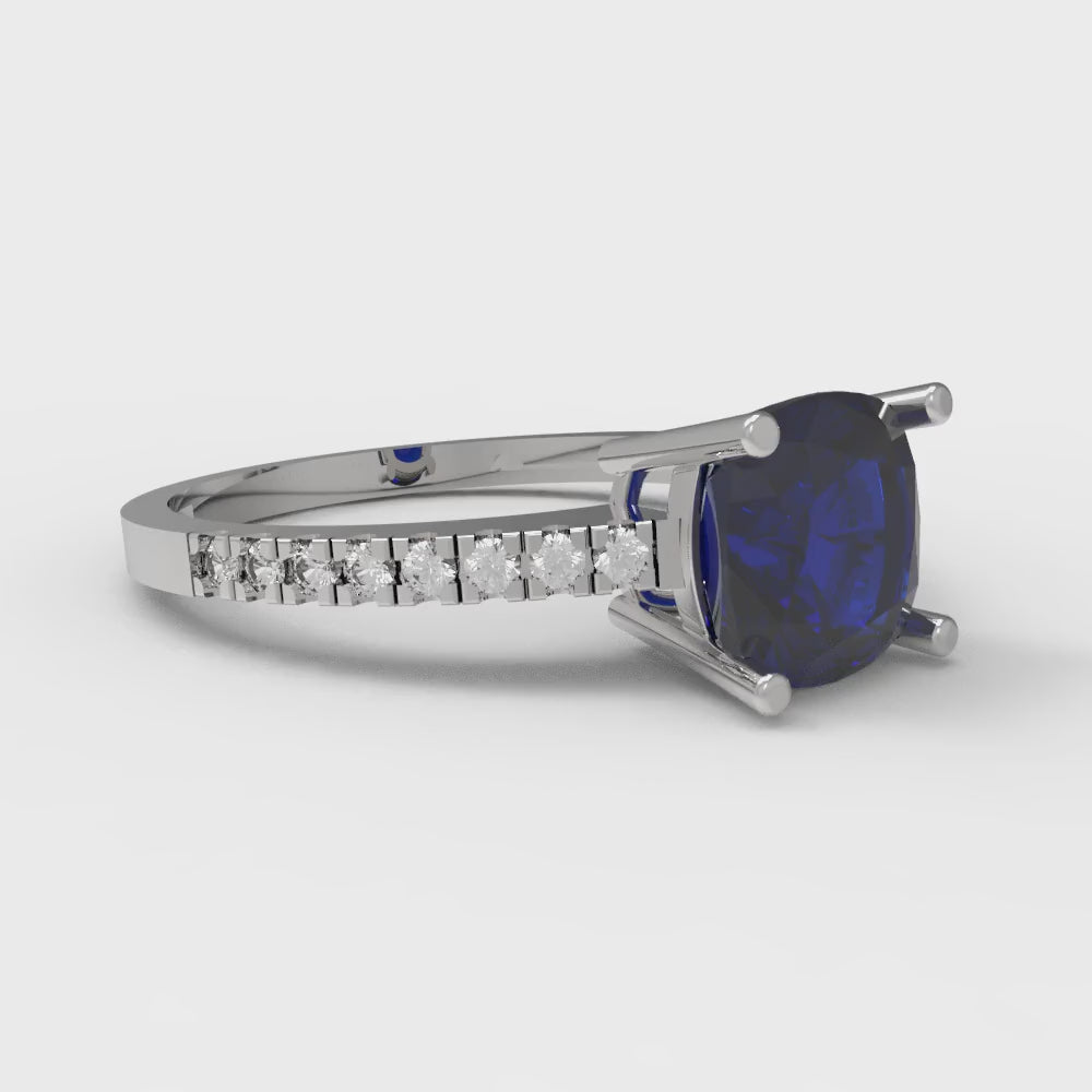 2.7 cttw Simulated Blue Sapphire Solitaire with Zirconia Simulated Diamond Accents Engagement Ring - Solid Gold (Cushion Cut,6.5mm)