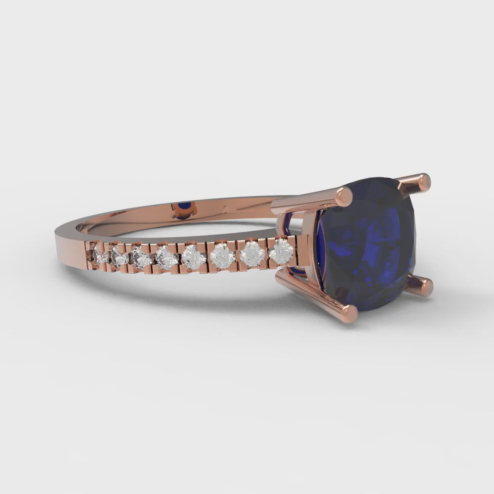 2.7 cttw Simulated Blue Sapphire Solitaire with Zirconia Simulated Diamond Accents Engagement Ring - Solid Gold (Cushion Cut,6.5mm)
