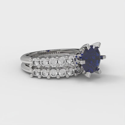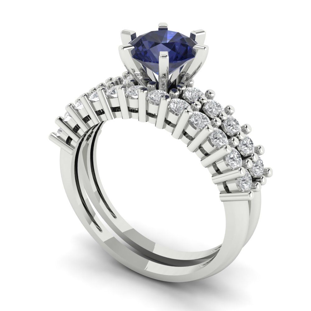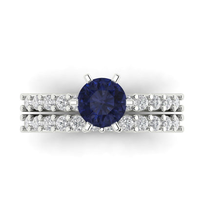 1.66 cttw Round Cut Simulated Blue Sapphire Bridal Set - Solid White Gold Engagement Ring & Wedding Band