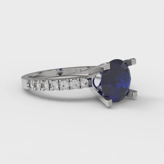 1.71 cttw Simulated Blue Sapphire Solitaire with Zirconia Simulated Diamond Accents Engagement Ring - Solid Gold (Round Cut,7.5mm)
