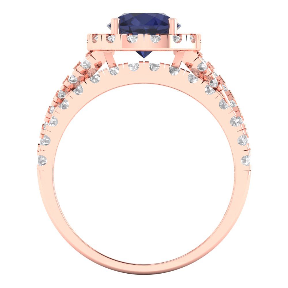 1.795 cttw Round Cut Simulated Blue Sapphire Bridal Set - Solid Rose Gold Engagement Ring & Wedding Band