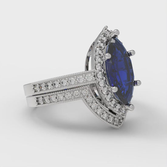 2.4875 cttw Marquise Cut Simulated Blue Sapphire Bridal Set - Solid White Gold Engagement Ring & Wedding Band