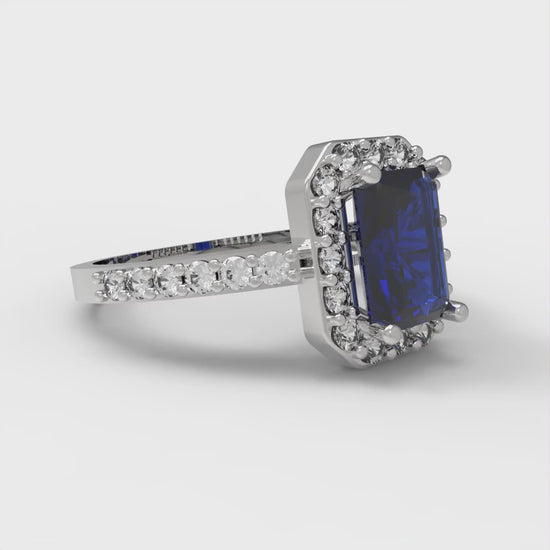2.16 cttw Emerald Cut Simulated Blue Sapphire Bridal Set - Solid White Gold Engagement Ring & Wedding Band