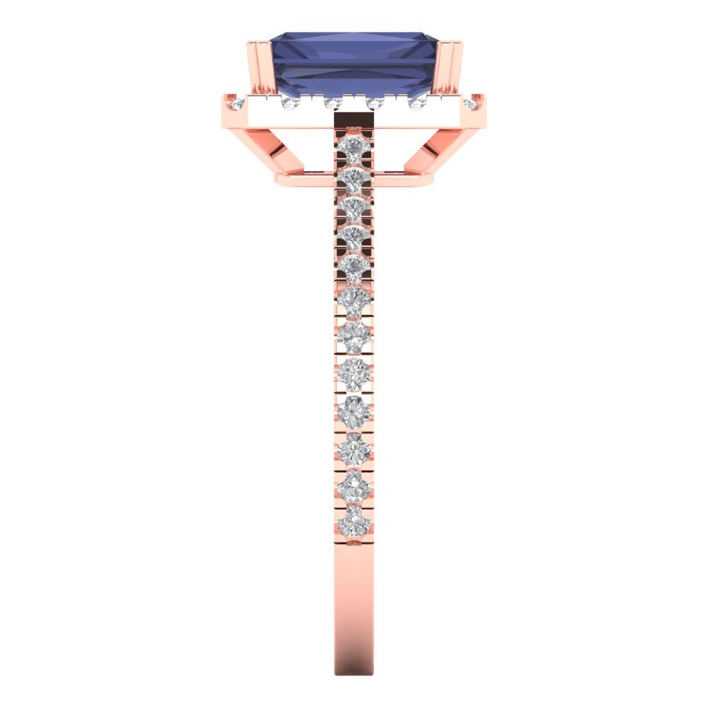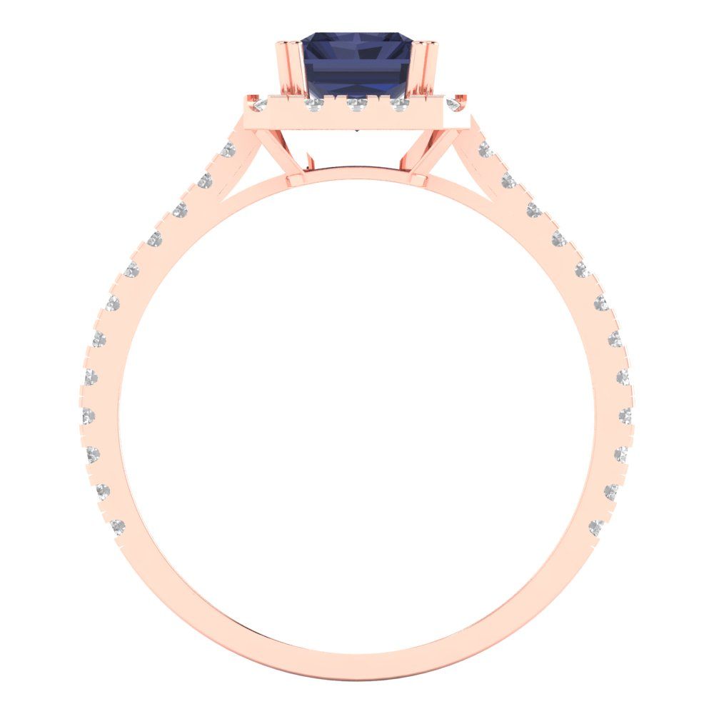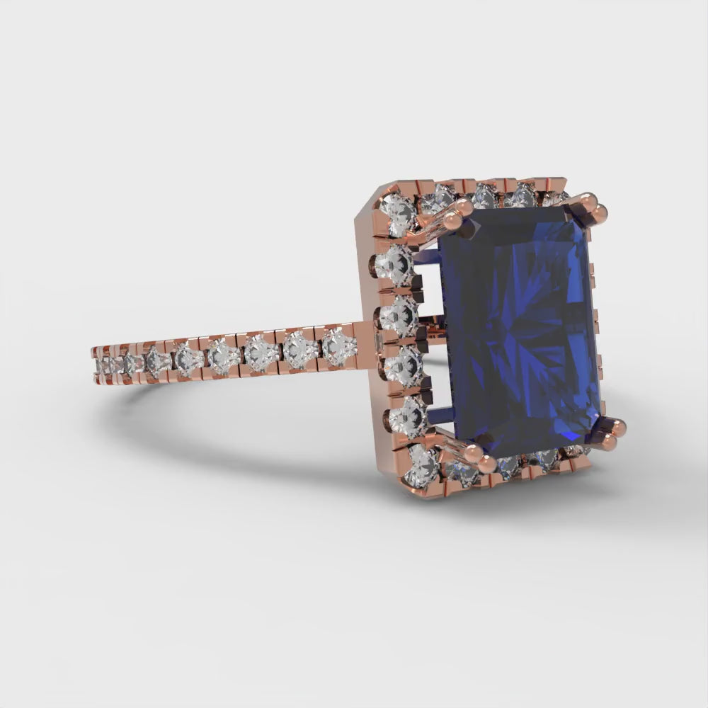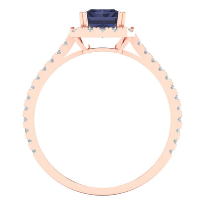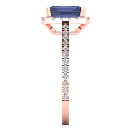 1.86 cttw Simulated Blue Sapphire Solitaire with Zirconia Simulated Diamond Accents Engagement Ring - Solid Gold (Emerald Cut,7.5x5.5mm)