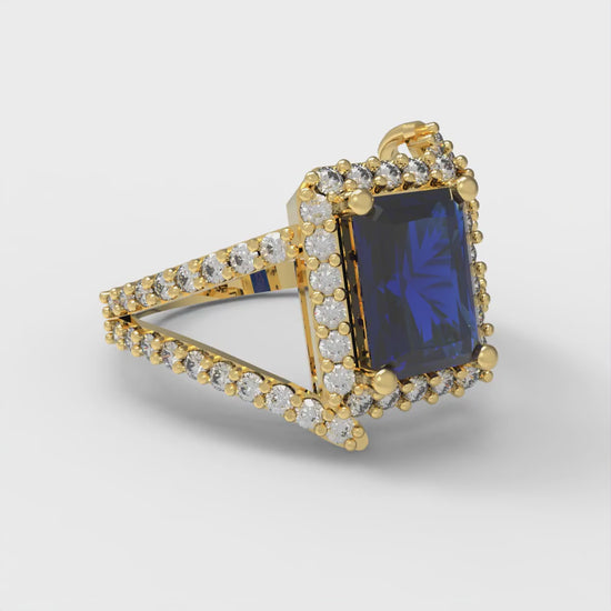 1.935 cttw Simulated Blue Sapphire Solitaire with Zirconia Simulated Diamond Accents Engagement Ring - Solid Gold (Emerald Cut,7.5x5.5mm)