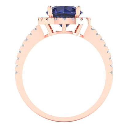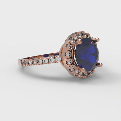 1.8 cttw Simulated Blue Sapphire Solitaire with Zirconia Simulated Diamond Accents Engagement Ring - Solid Gold (Round Cut,7.5mm)