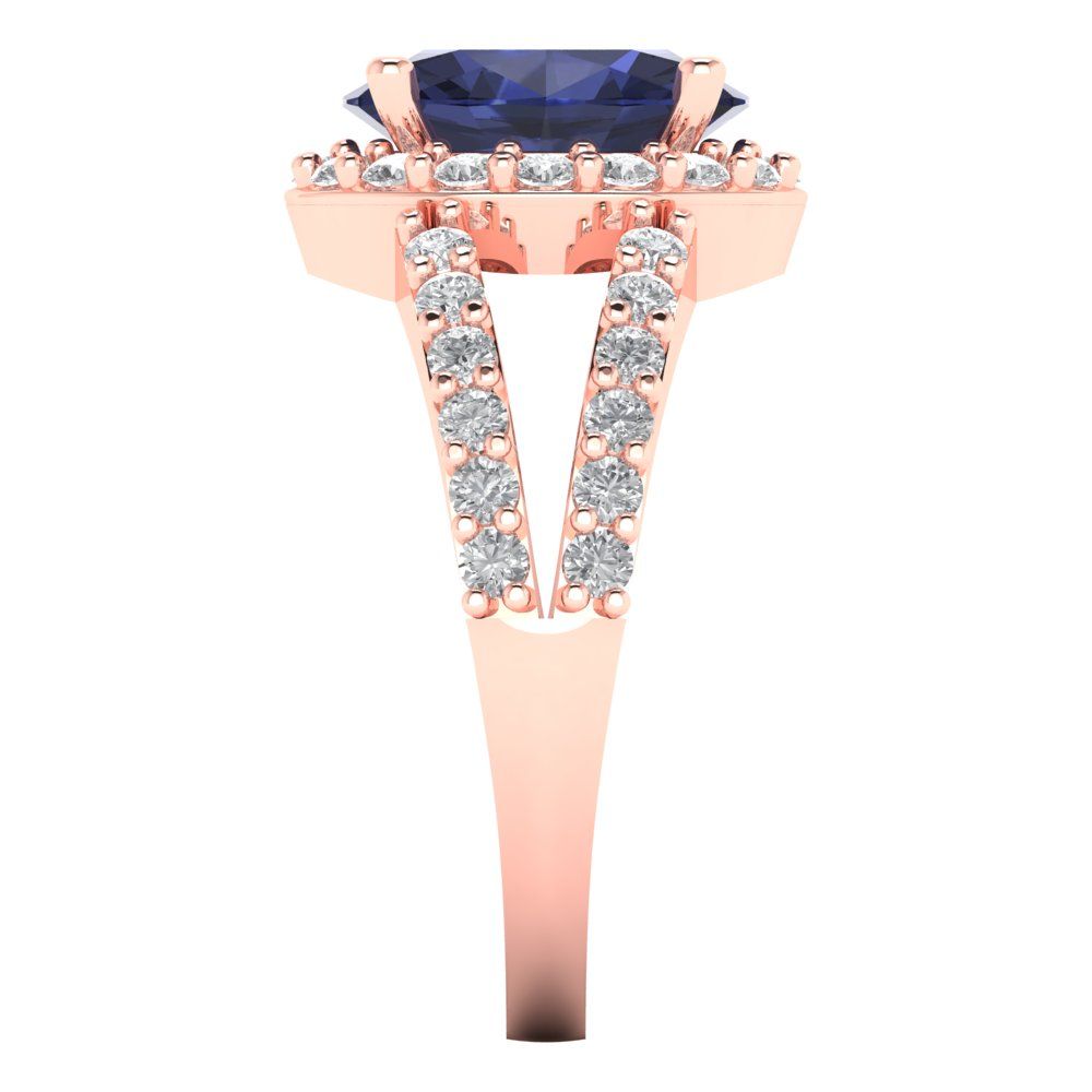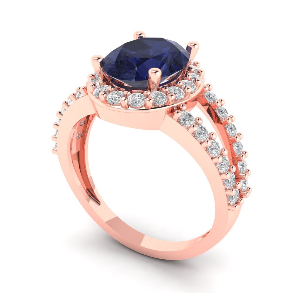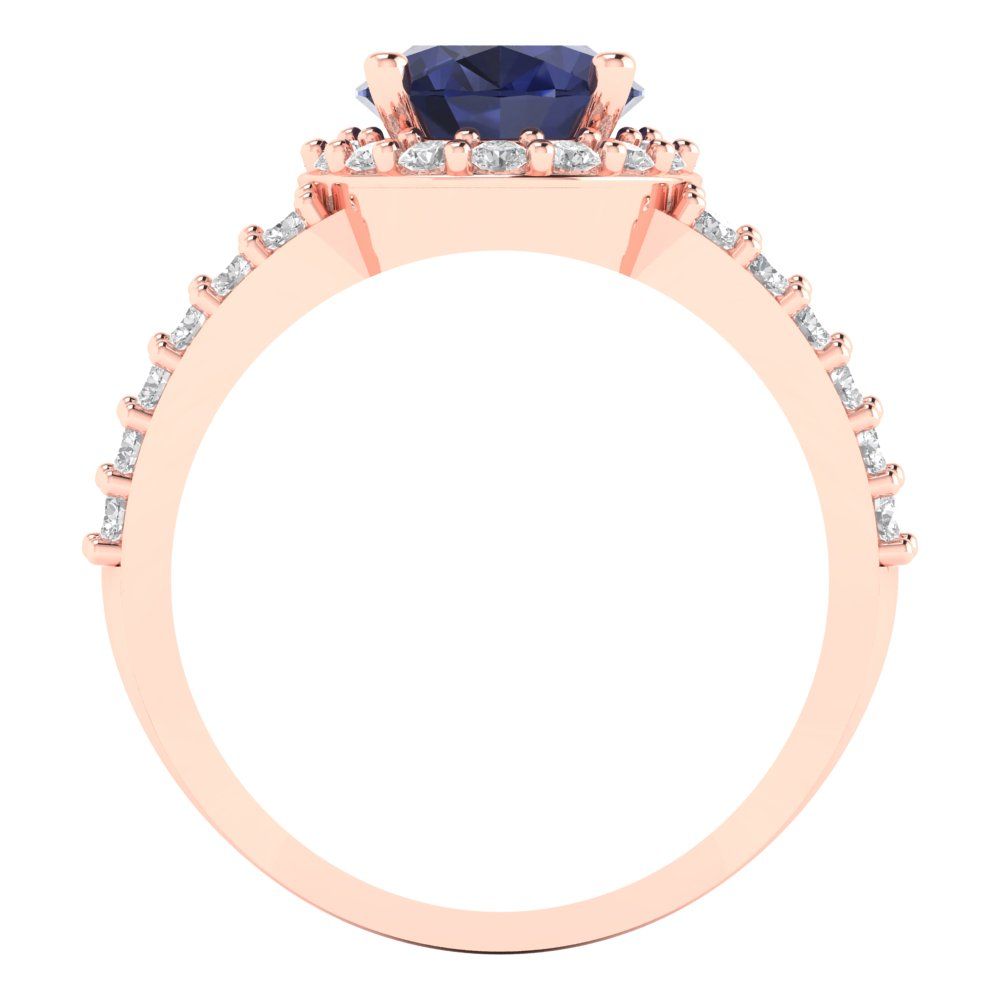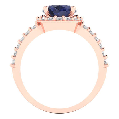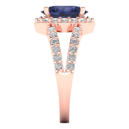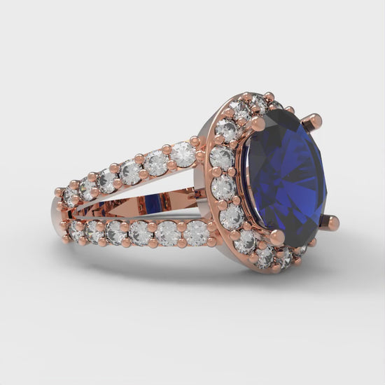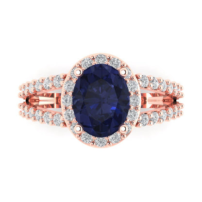2.6 cttw Simulated Blue Sapphire Solitaire with Zirconia Simulated Diamond Accents Engagement Ring - Solid Gold (Oval Cut,9x7mm)