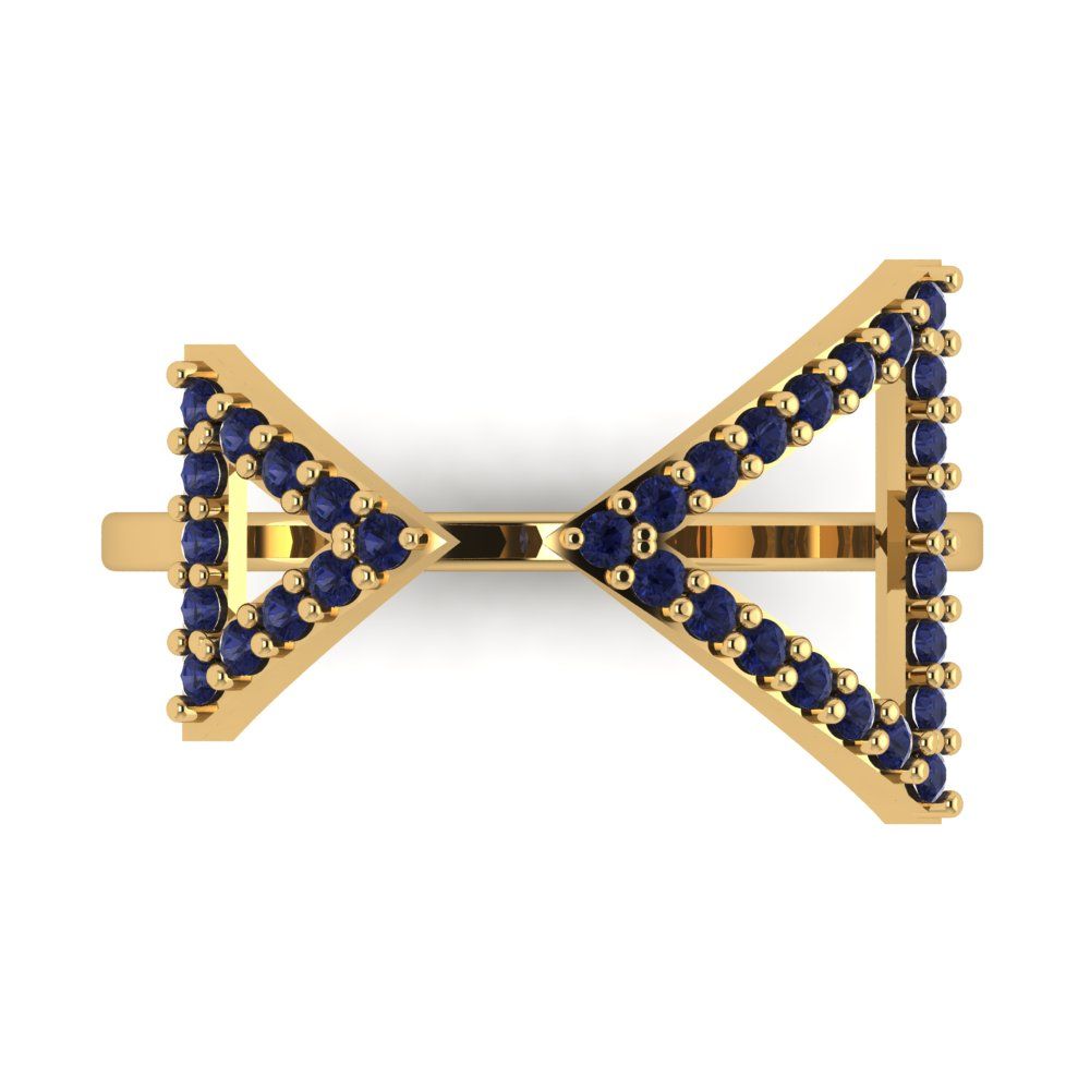 0.2475 cttw Simulated Blue Sapphire Statement Engagement Ring - Solid Gold (Round Cut,1.2mm)