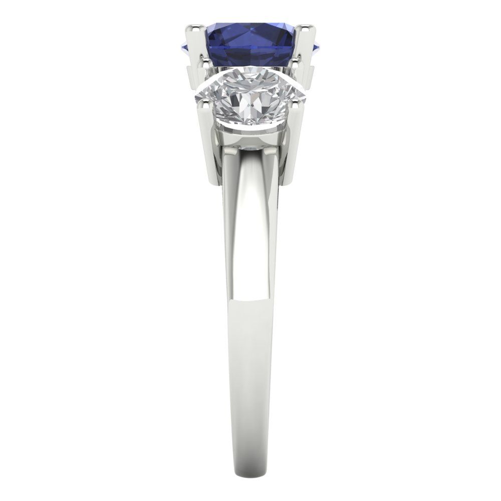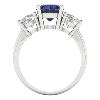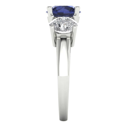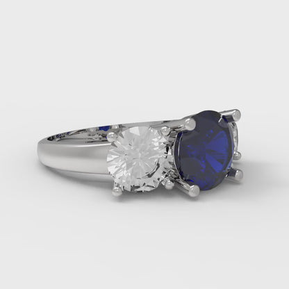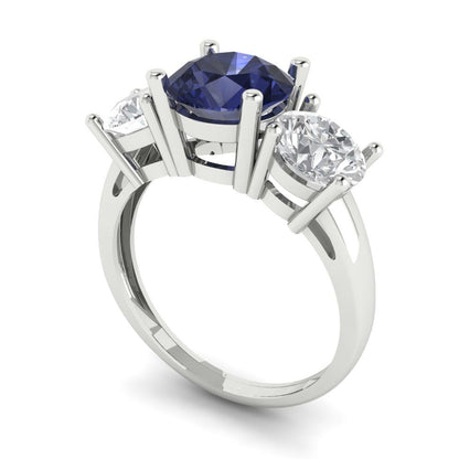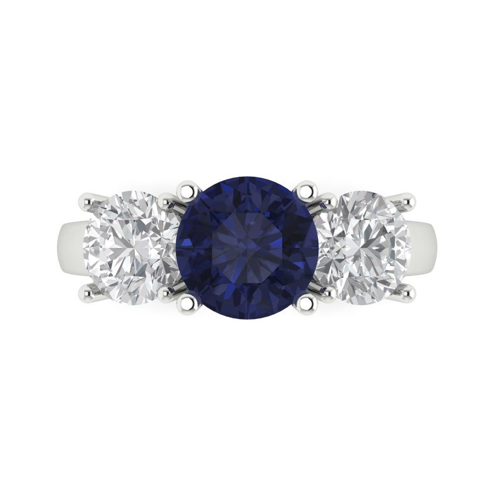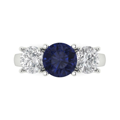 2.5 cttw Simulated Blue Sapphire Three-Stone Engagement Ring - Solid Gold (Round Cut,7.5mm)