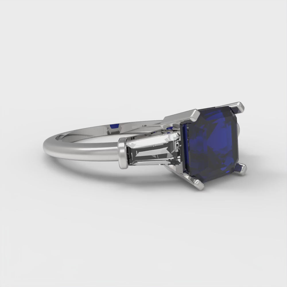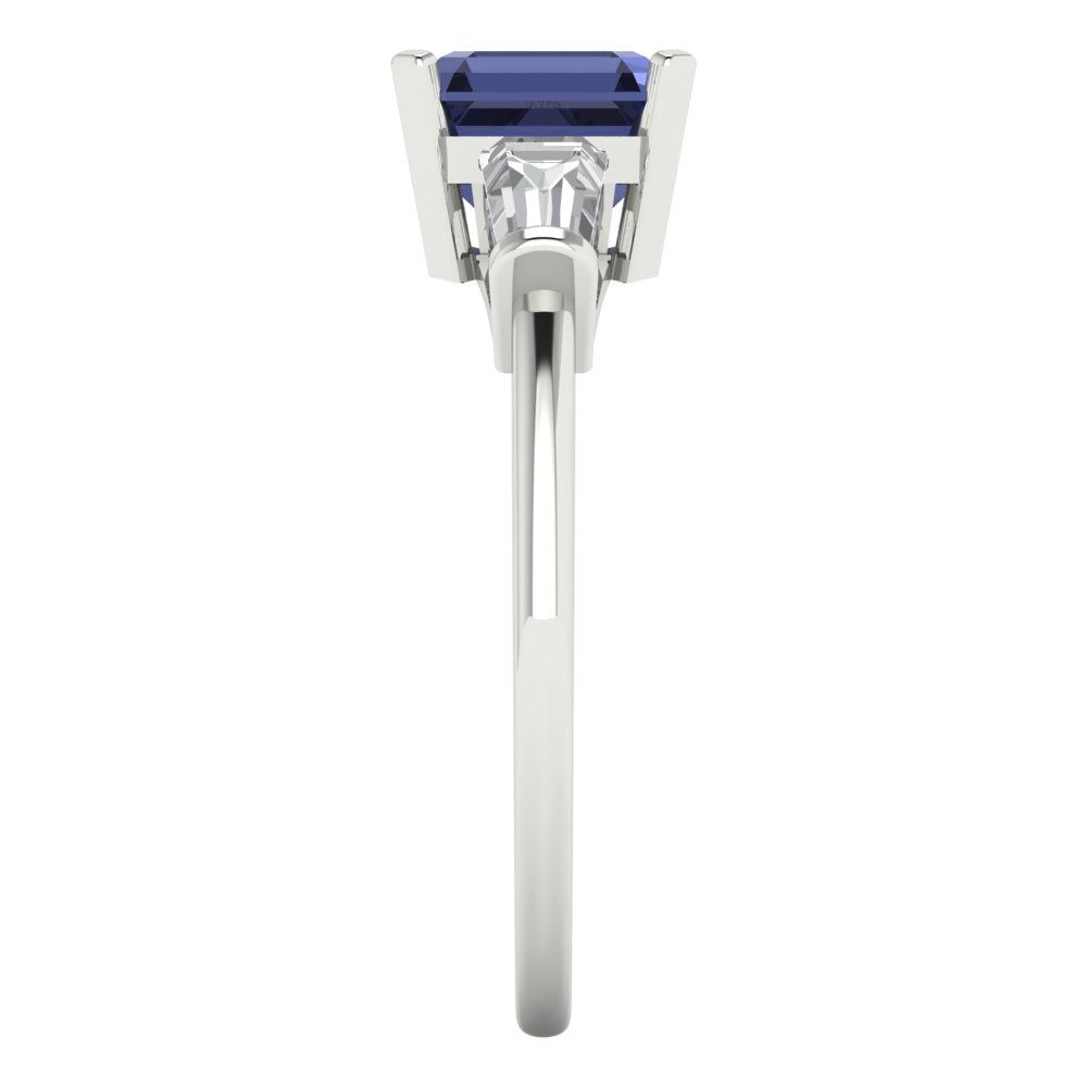1.62 cttw Simulated Blue Sapphire Three-Stone Engagement Ring - Solid Gold (Square Emerald Cut,6.5X6.5mm)