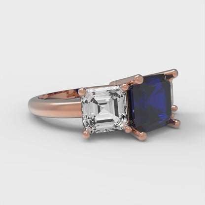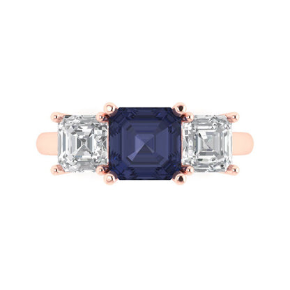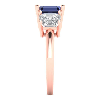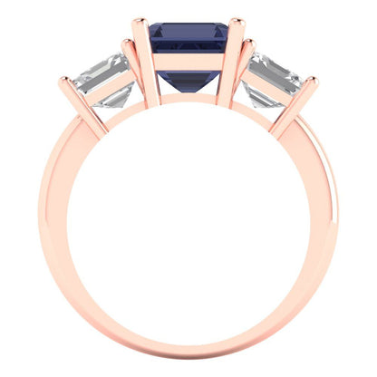 4 cttw Simulated Blue Sapphire Three-Stone Engagement Ring - Solid Gold (Square Emerald Cut,7.0X7.0mm)
