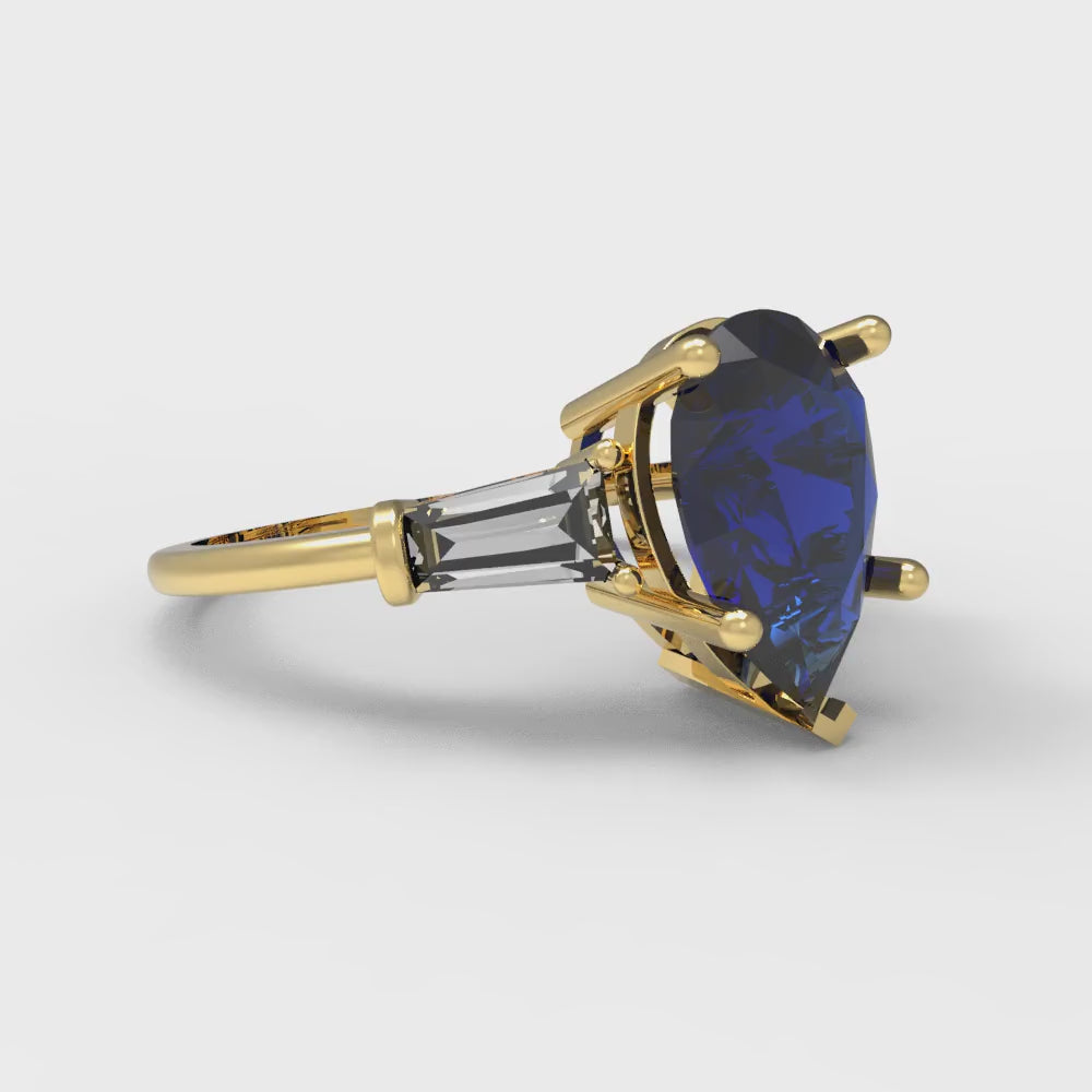 2.5 cttw Simulated Blue Sapphire Three-Stone Engagement Ring - Solid Gold (Pear Cut,10x7mm)