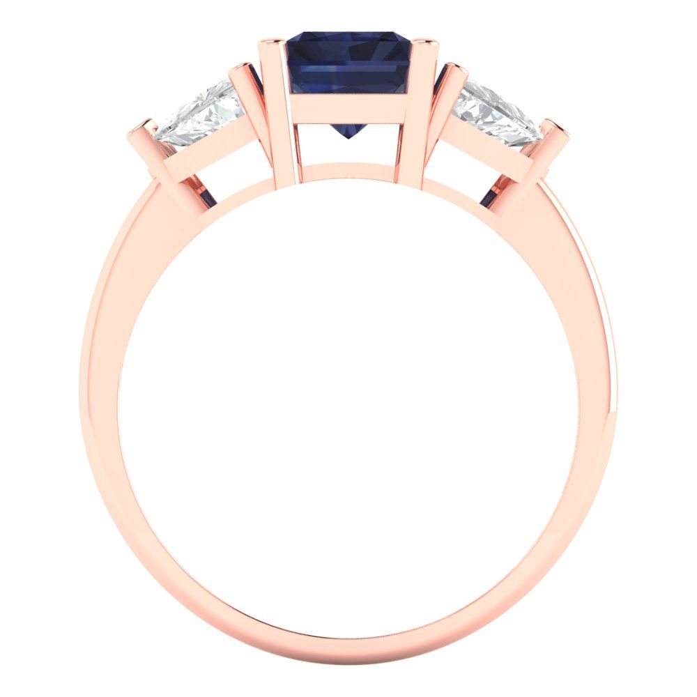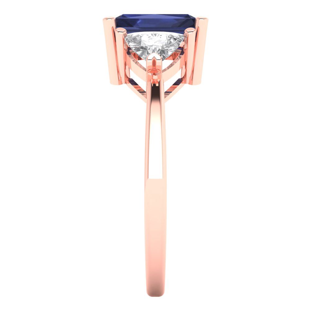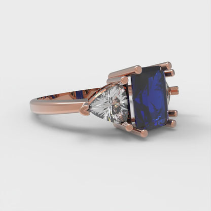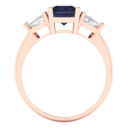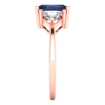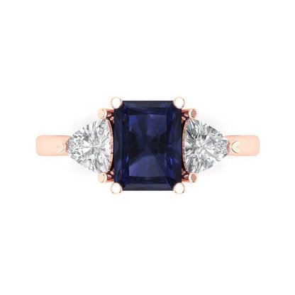 2.82 cttw Simulated Blue Sapphire Three-Stone Engagement Ring - Solid Gold (Emerald Cut,8x6mm)