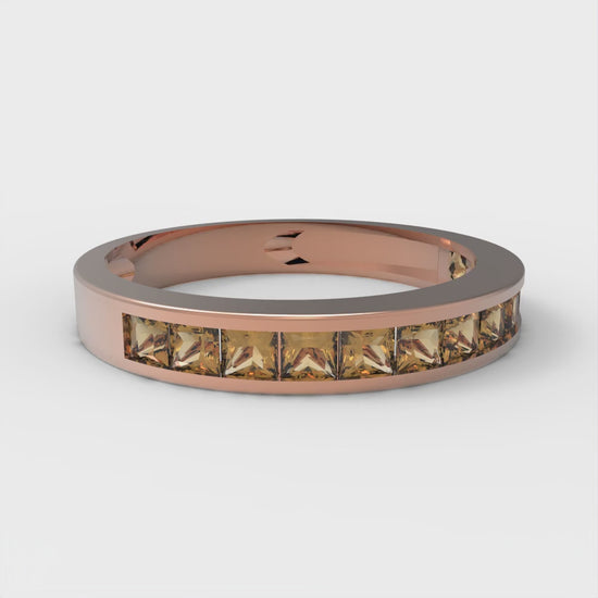 0.78 cttw Simulated Champagne Diamond Princess Cut Rose Gold Eternity Wedding Band