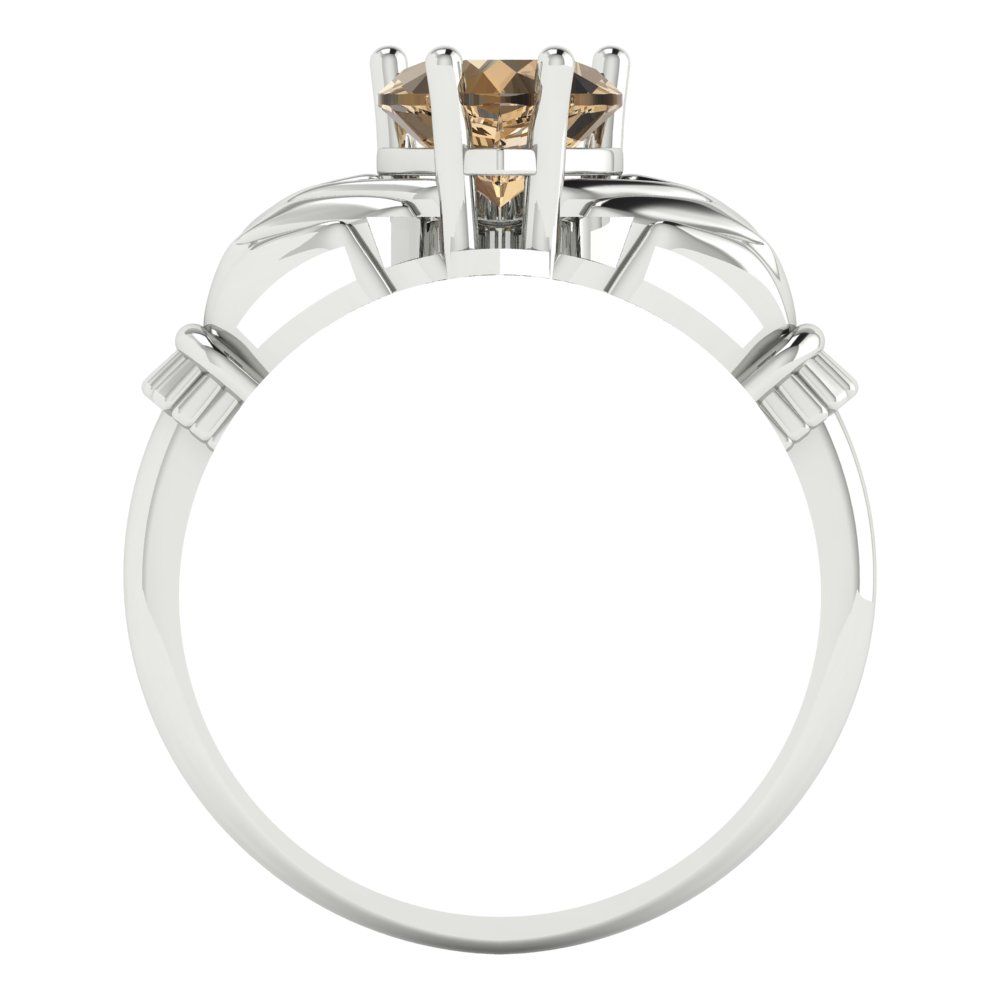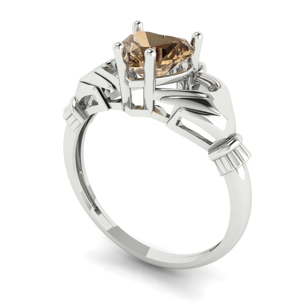 1.05 cttw Zirconia Simulated Champagne Diamond Celtic Claddagh Engagement Ring - Solid Gold (VVS1, Heart Cut,6.5mm)
