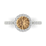 1.86 cttw Zirconia Simulated Champagne Diamond Hidden Halo Engagement Ring - Solid Gold (VVS1, Round Cut,7.5mm)