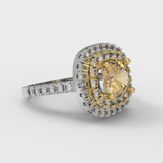 1.615 cttw Zirconia Simulated Champagne Diamond Hidden Halo Engagement Ring - Solid Gold (VVS1, Round Cut,6.5mm)