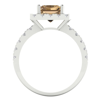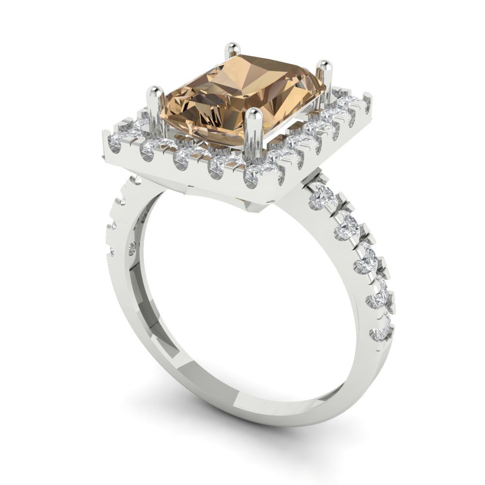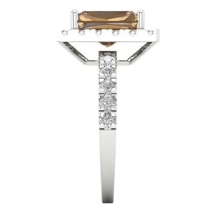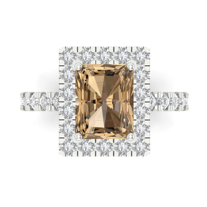 3.84 cttw Zirconia Simulated Champagne Diamond Hidden Halo Engagement Ring - Solid Gold (VVS1, Emerald Cut,9x7mm)