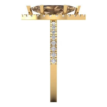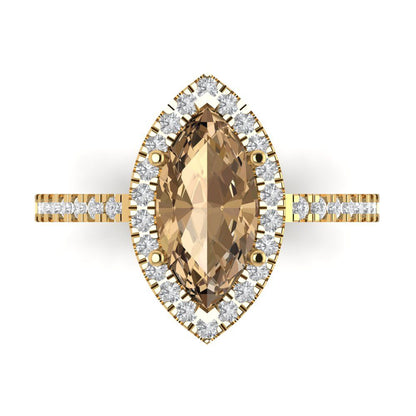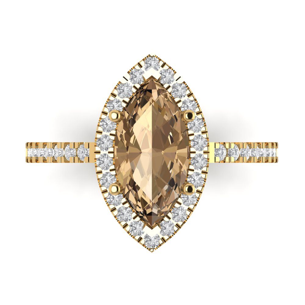 2.38 cttw Zirconia Simulated Champagne Diamond Hidden Halo Engagement Ring - Solid Gold (VVS1, Marquise Cut,12x6mm )