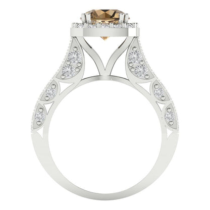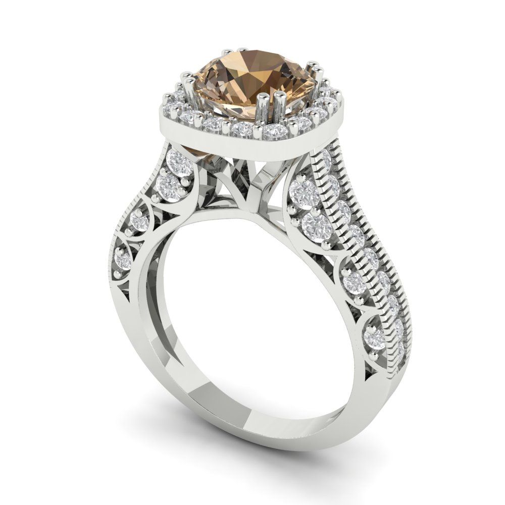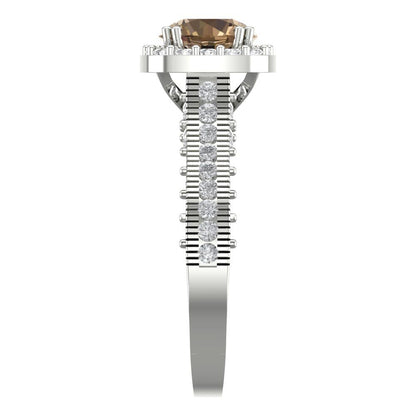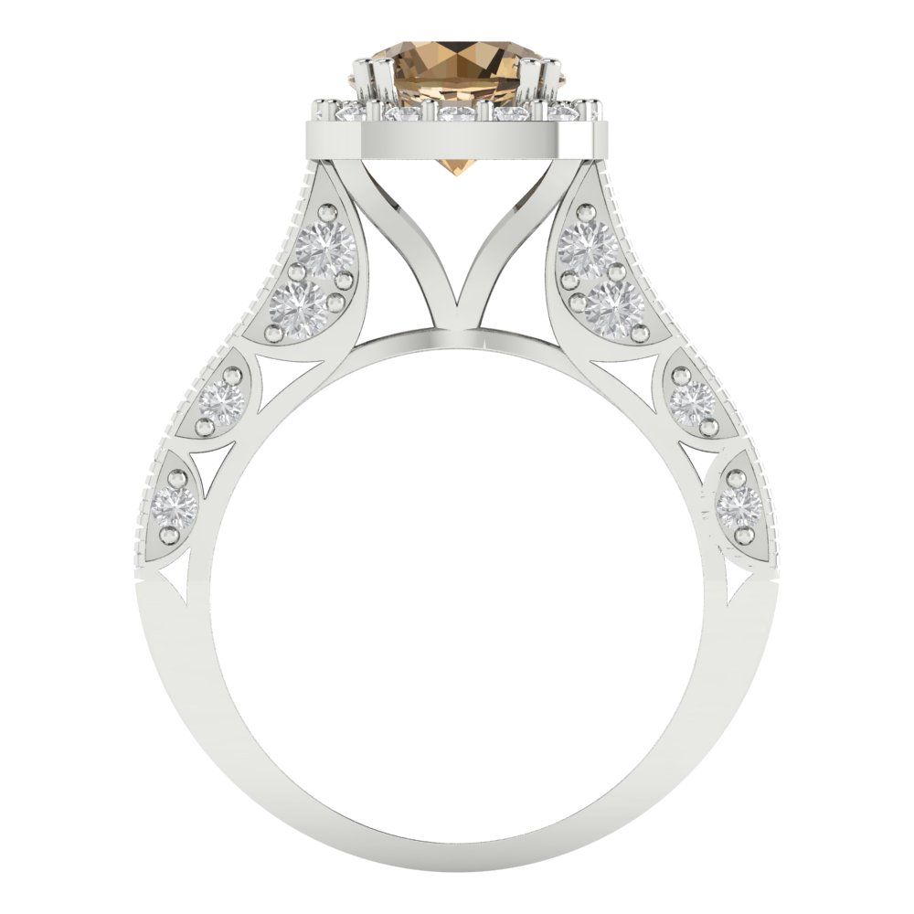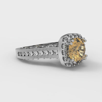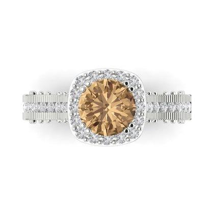 2.37 cttw Zirconia Simulated Champagne Diamond Hidden Halo Engagement Ring - Solid Gold (VVS1, Round Cut,7.5mm)