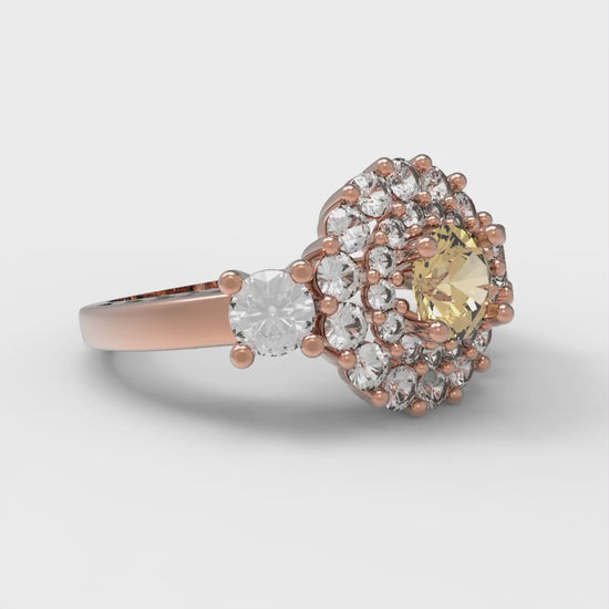 1.4 cttw Zirconia Simulated Champagne Diamond Hidden Halo Engagement Ring - Solid Gold (VVS1, Round Cut,5.0mm)