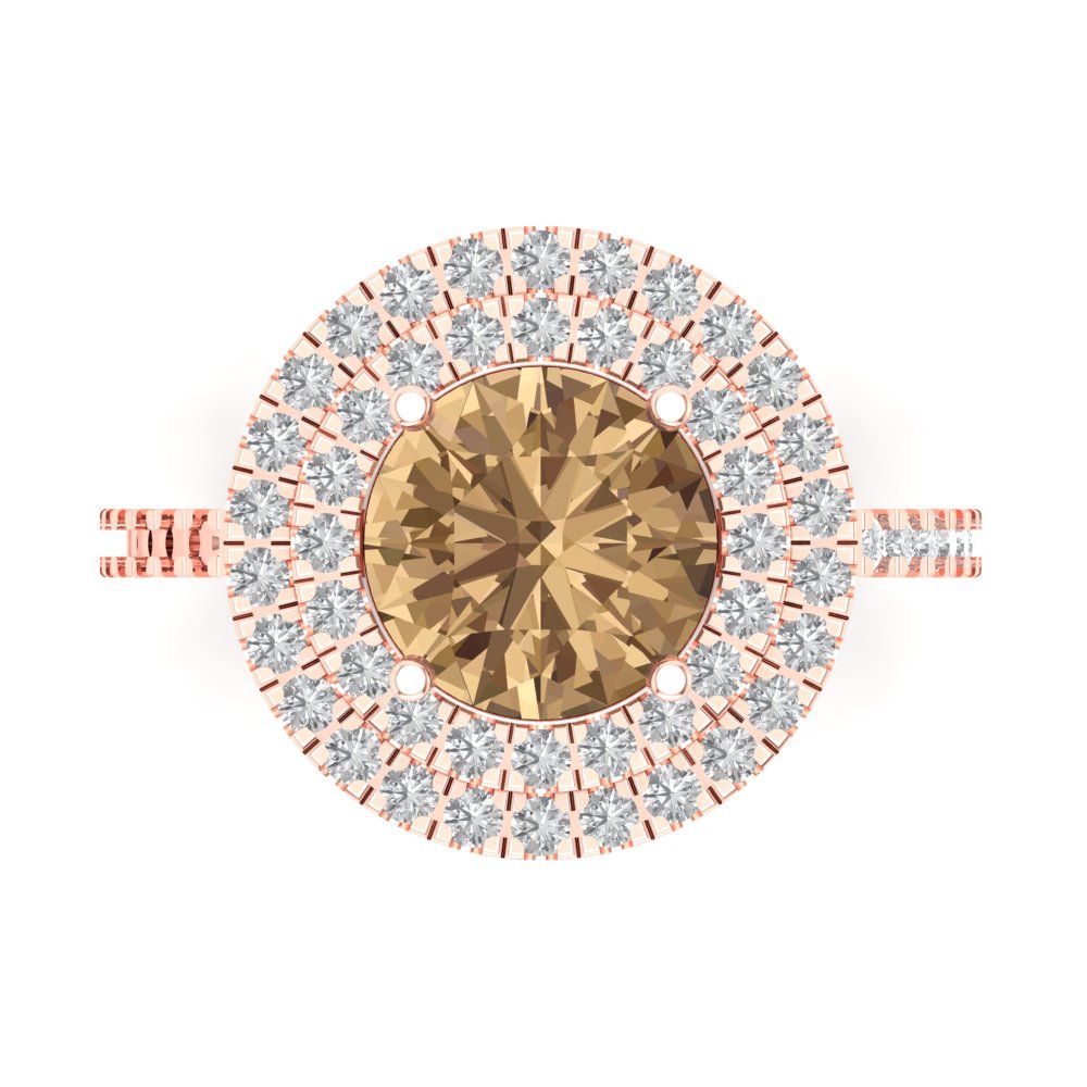 2.6 cttw Zirconia Simulated Champagne Diamond Hidden Halo Engagement Ring - Solid Gold (VVS1, Round Cut,8.0mm)
