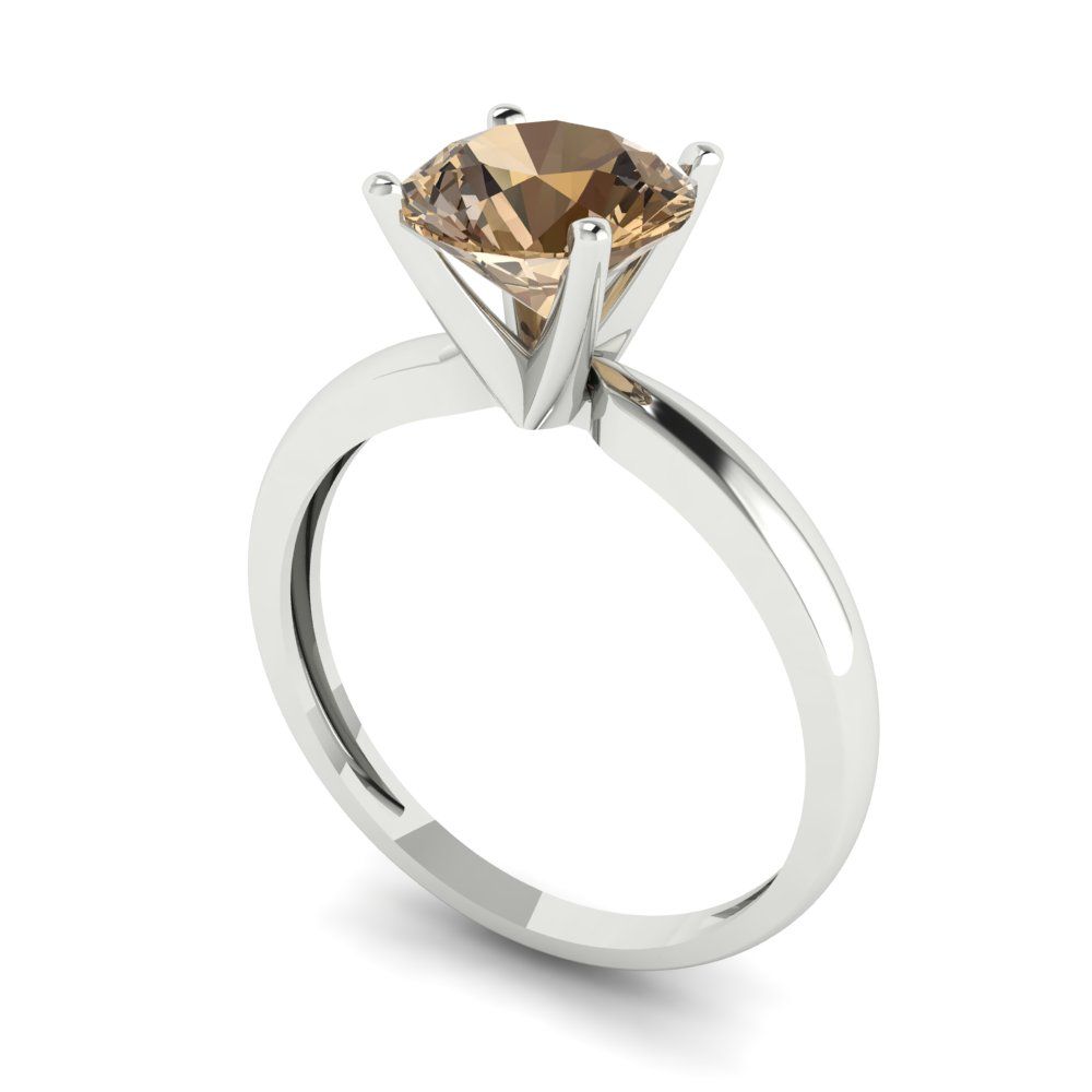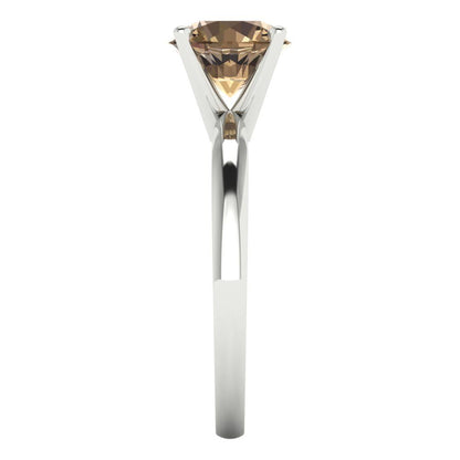 1.5 cttw Zirconia Simulated Champagne Diamond Solitaire Engagement Ring - Solid Gold (VVS1, Round Cut,7.5mm)