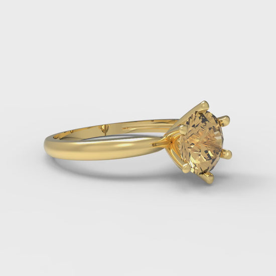 1 cttw Zirconia Simulated Champagne Diamond Solitaire Engagement Ring - Solid Gold (VVS1, Round Cut,6.5mm)