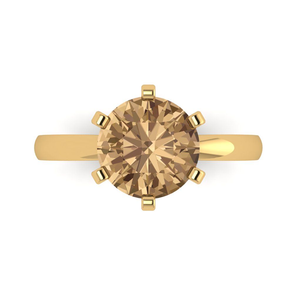 3 cttw Zirconia Simulated Champagne Diamond Solitaire Engagement Ring - Solid Gold (VVS1, Round Cut,9mm)