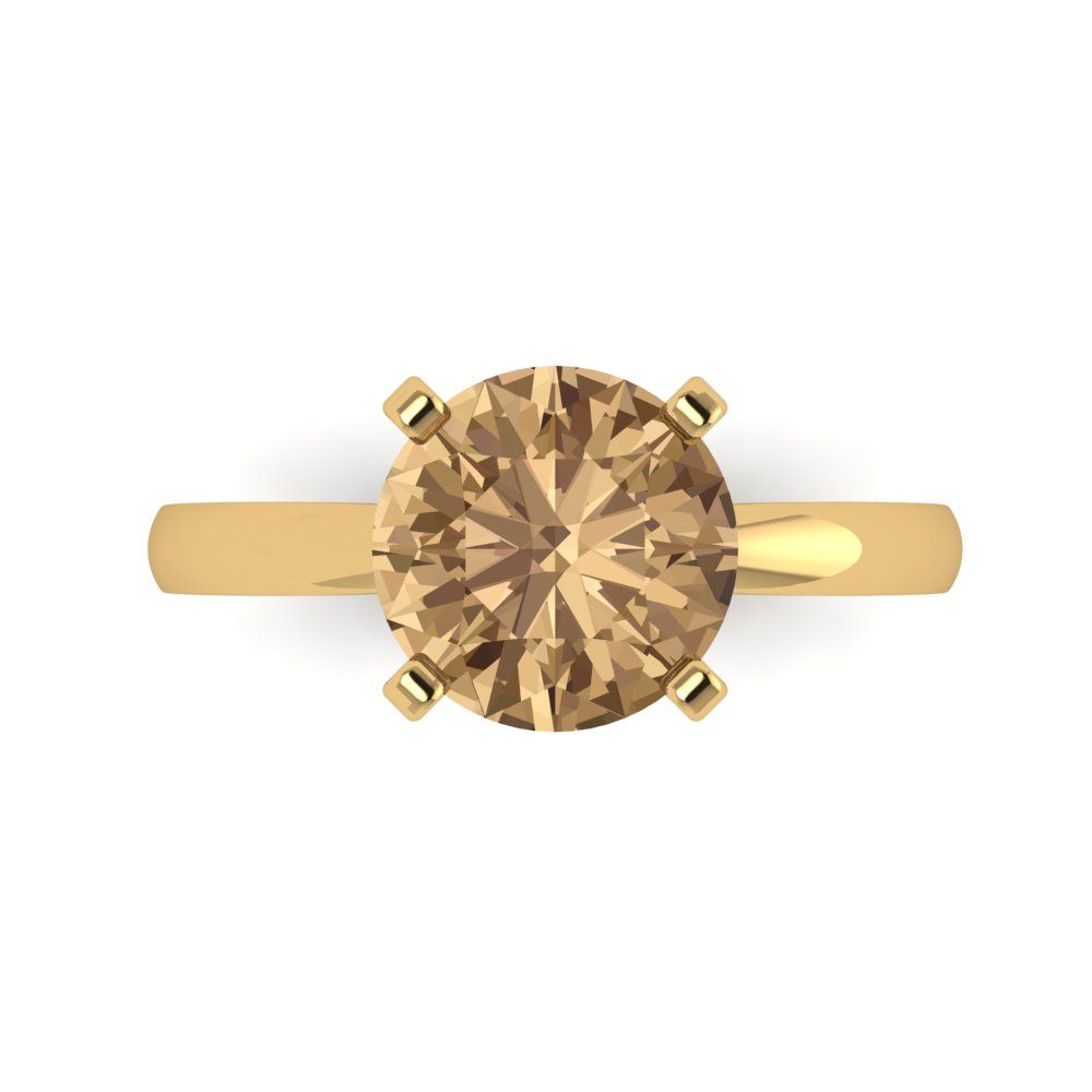 3 cttw Zirconia Simulated Champagne Diamond Solitaire Engagement Ring - Solid Gold (VVS1, Round Cut,9mm)