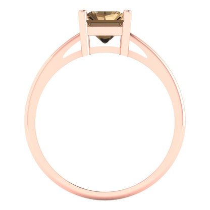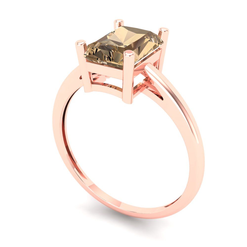 2 cttw Zirconia Simulated Champagne Diamond Solitaire Engagement Ring - Solid Gold (VVS1, Emerald Cut,8x6mm)