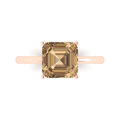 2.5 cttw Zirconia Simulated Champagne Diamond Solitaire Engagement Ring - Solid Gold (VVS1, Asscher Cut,8.0mm)