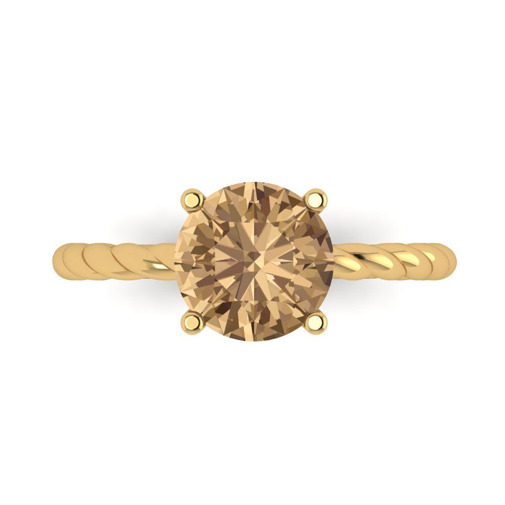 2 cttw Zirconia Simulated Champagne Diamond Solitaire Engagement Ring - Solid Gold (VVS1, Round Cut,8.0mm)