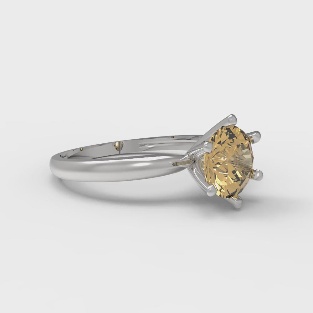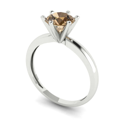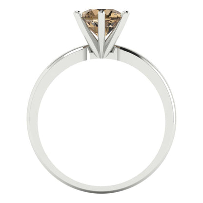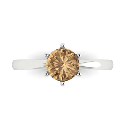 1 cttw Zirconia Simulated Champagne Diamond Solitaire Engagement Ring - Solid Gold (VVS1, Round Cut,6.5mm)