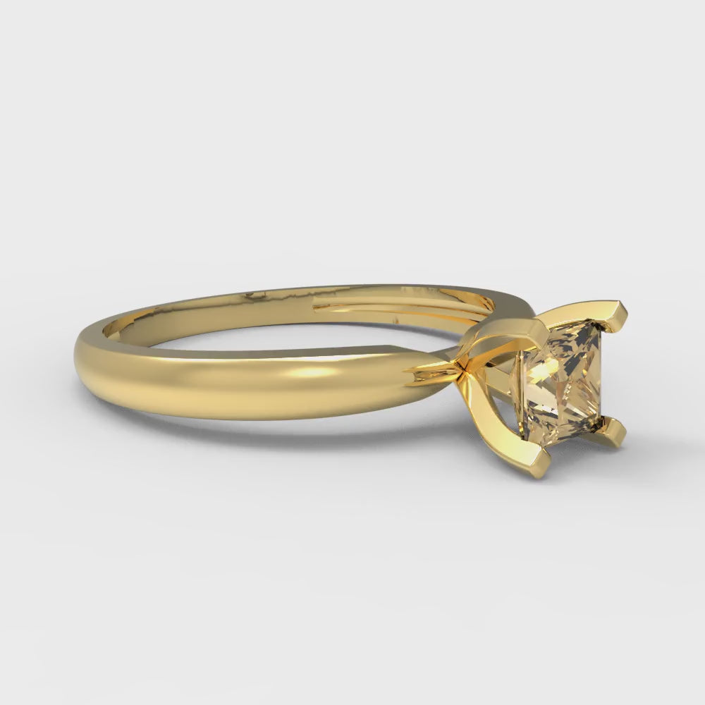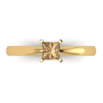 0.5 cttw Zirconia Simulated Champagne Diamond Solitaire Engagement Ring - Solid Gold (VVS1, Princess Cut,4mm)