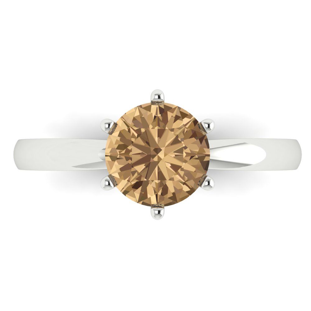 1.5 cttw Zirconia Simulated Champagne Diamond Solitaire Engagement Ring - Solid Gold (VVS1, Round Cut,7.5mm)