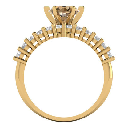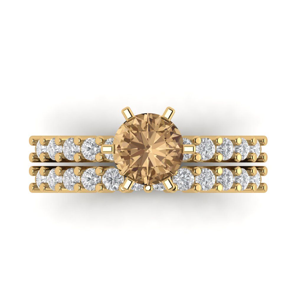 1.66 cttw Round Cut Simulated Champagne Diamond Bridal Set - Solid Yellow Gold Engagement Ring & Wedding Band