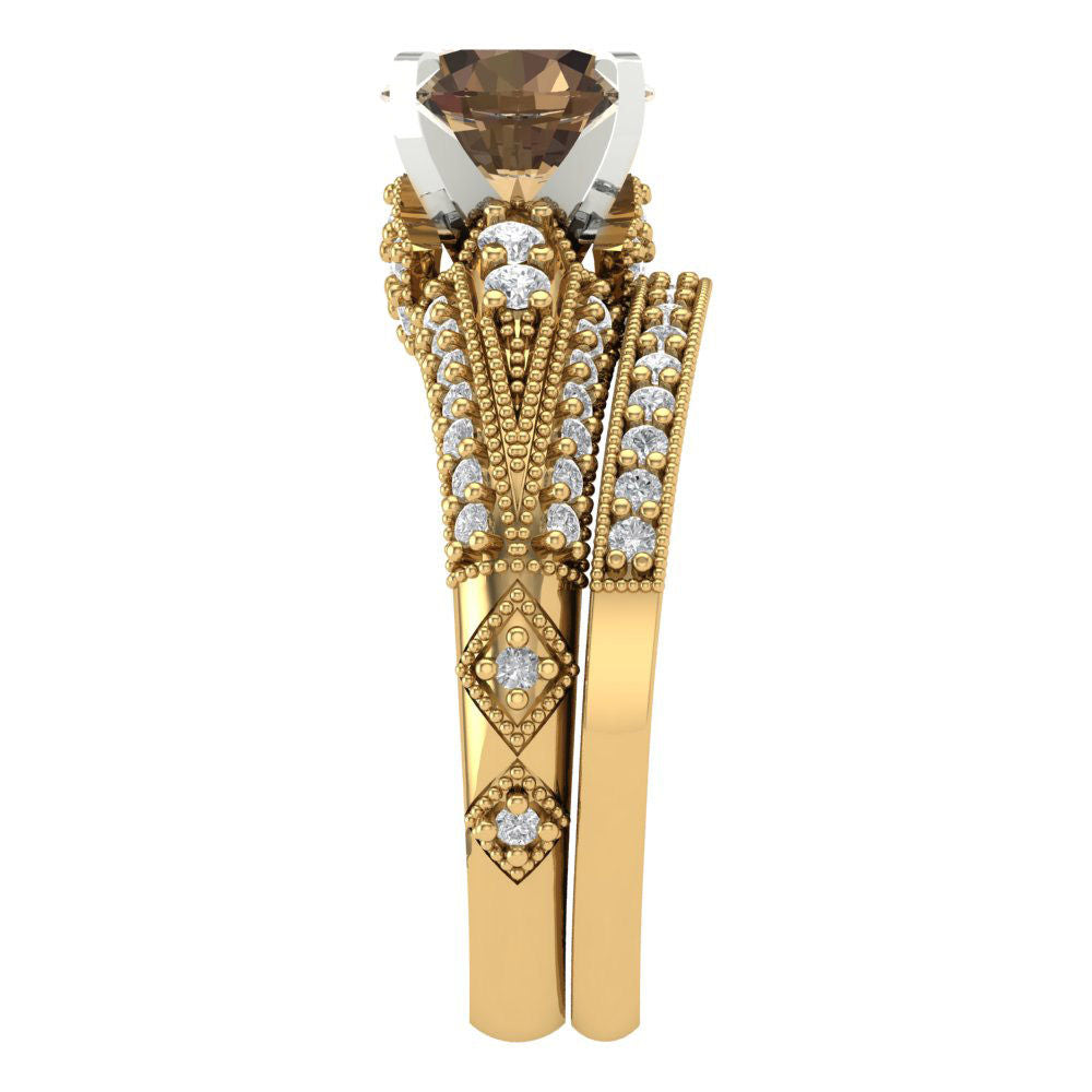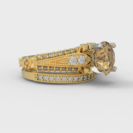 2.095 cttw Round Cut Simulated Champagne Diamond Bridal Set - Solid Yellow/White Gold Engagement Ring & Wedding Band