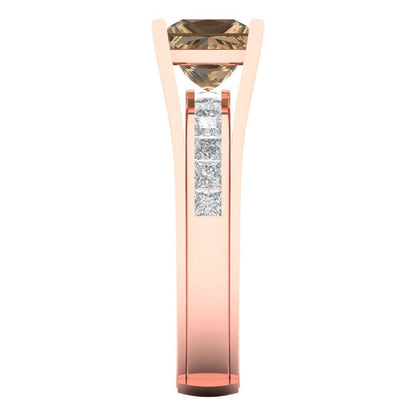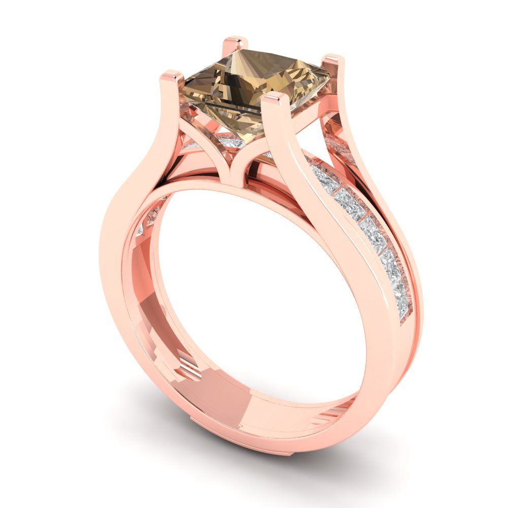 2.28 cttw Princess Cut Simulated Champagne Diamond Bridal Set - Solid Rose Gold Engagement Ring & Wedding Band