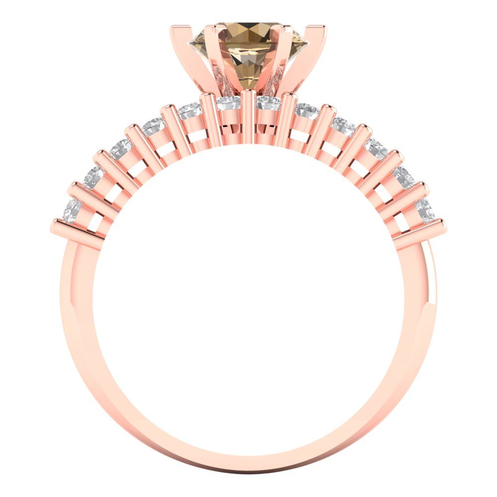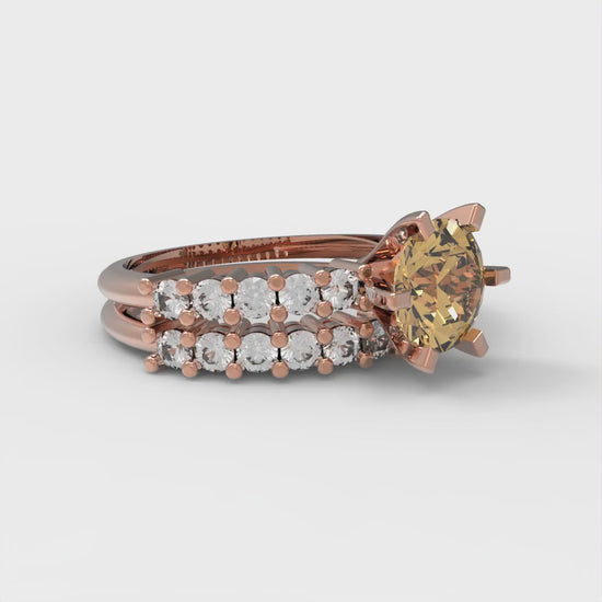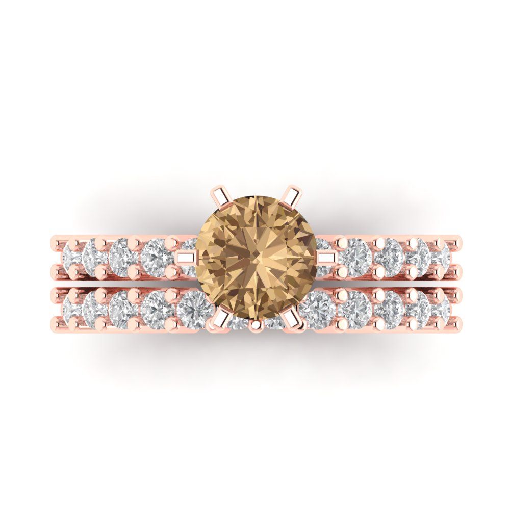 1.66 cttw Round Cut Simulated Champagne Diamond Bridal Set - Solid Rose Gold Engagement Ring & Wedding Band