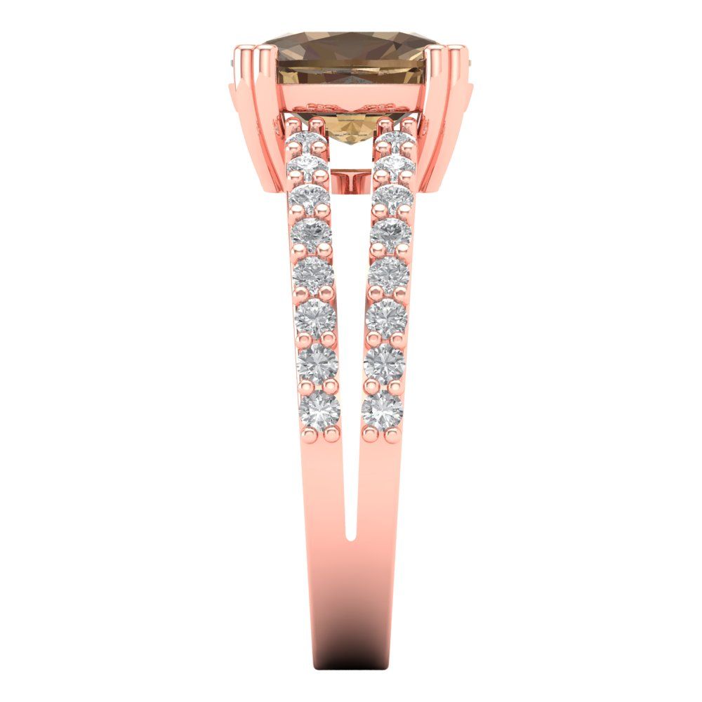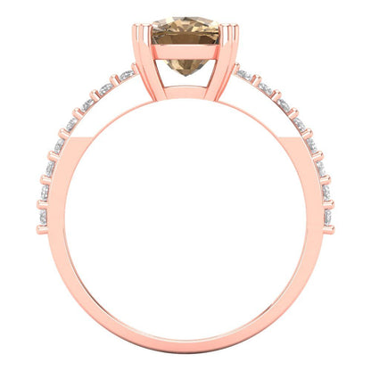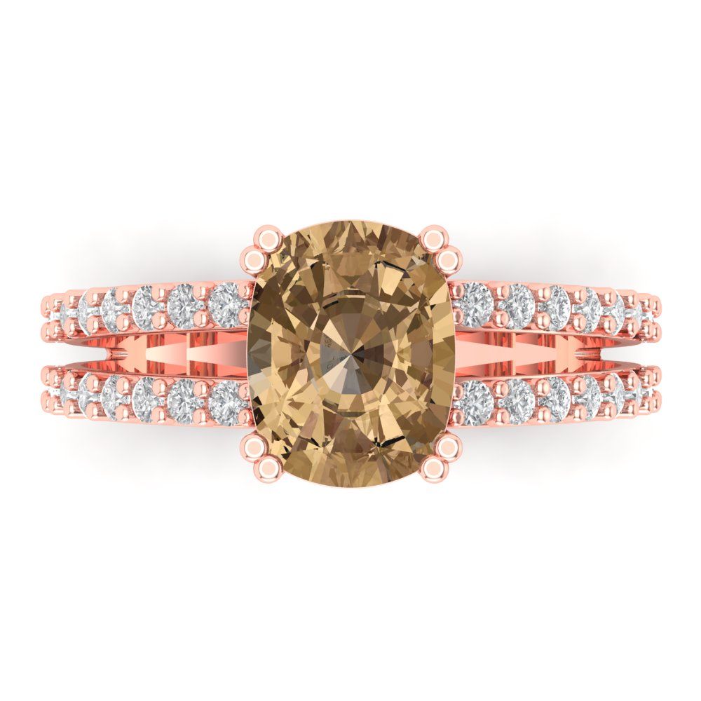 3.48 cttw Zirconia Simulated Champagne Diamond Solitaire with Zirconia Simulated Diamond Accents Engagement Ring - Solid Gold (VVS1, Long Cushion Cut,9x7mm)