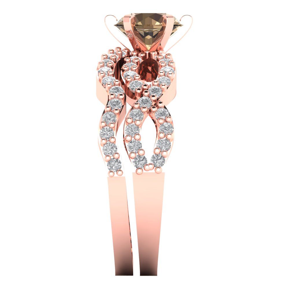 1.57 cttw Round Cut Simulated Champagne Diamond Bridal Set - Solid Rose Gold Engagement Ring & Wedding Band