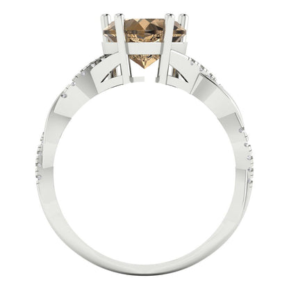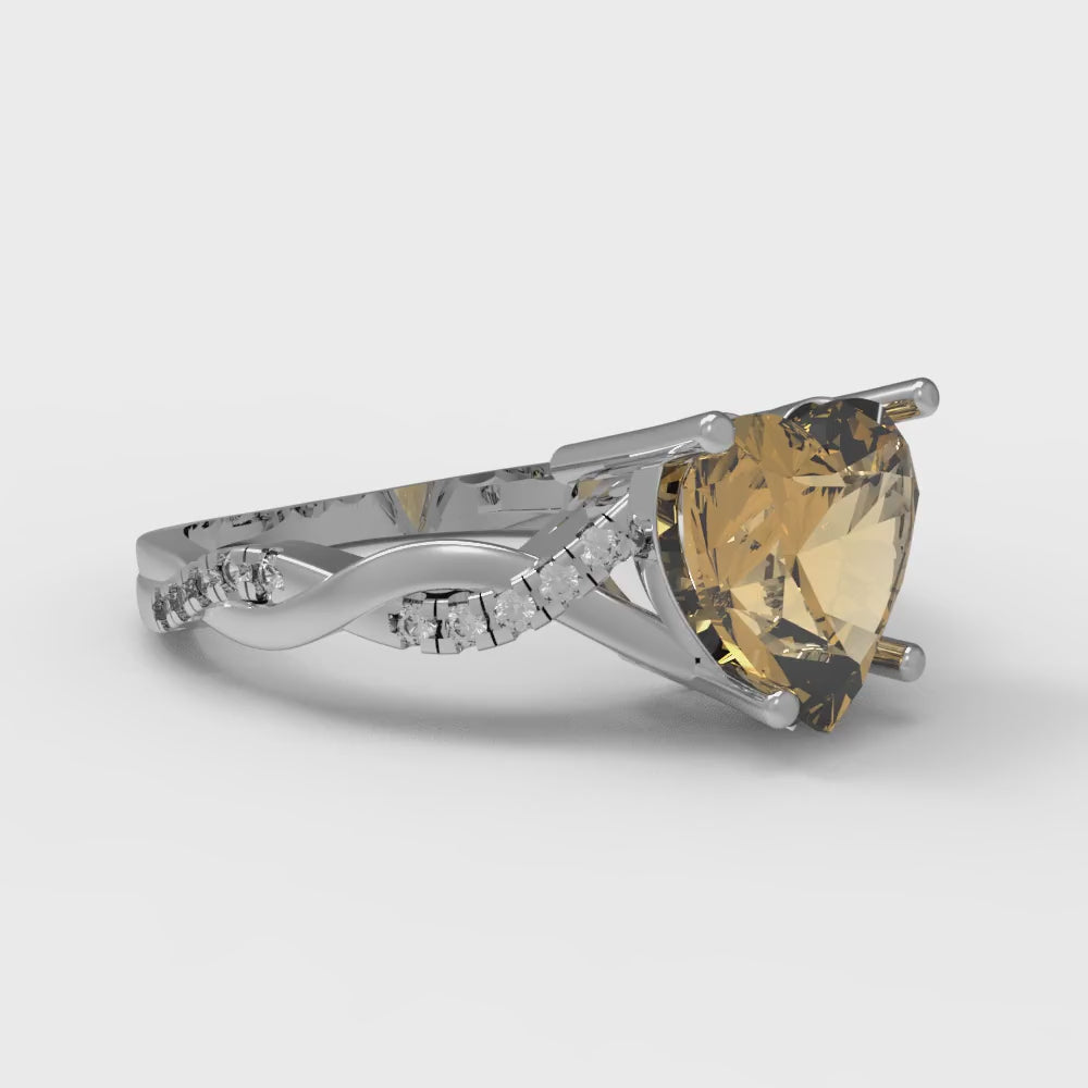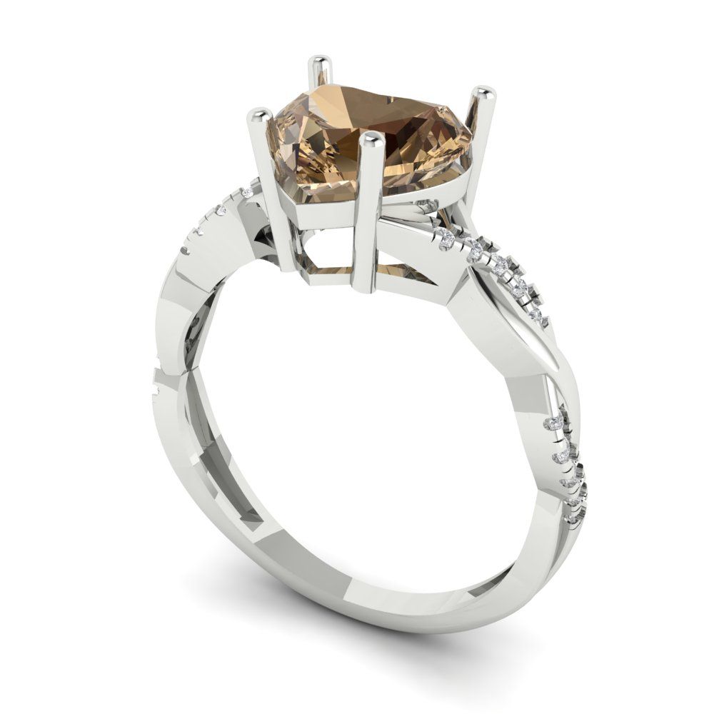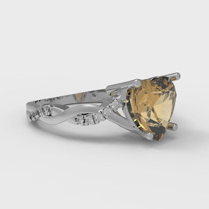 2.1 cttw Zirconia Simulated Champagne Diamond Solitaire with Zirconia Simulated Diamond Accents Engagement Ring - Solid Gold (VVS1, Heart Cut,8mm)