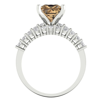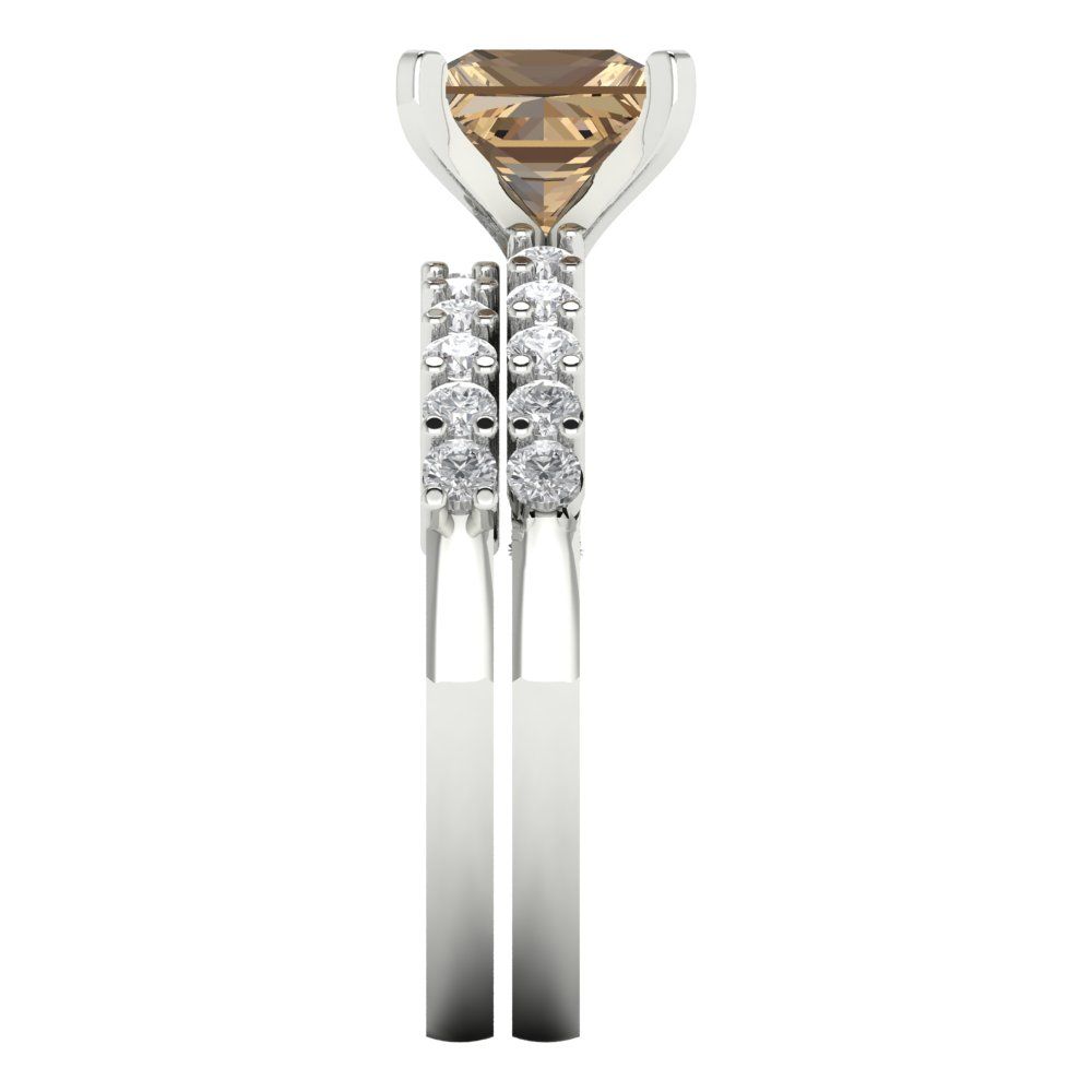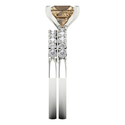 2.63 cttw Princess Cut Simulated Champagne Diamond Bridal Set - Solid White Gold Engagement Ring & Wedding Band