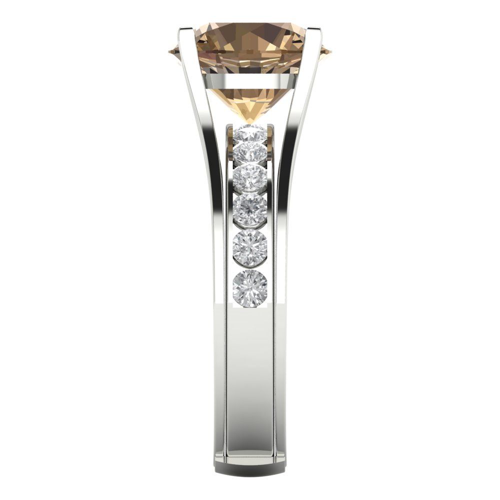3.39 cttw Round Cut Simulated Champagne Diamond Bridal Set - Solid White Gold Engagement Ring & Wedding Band