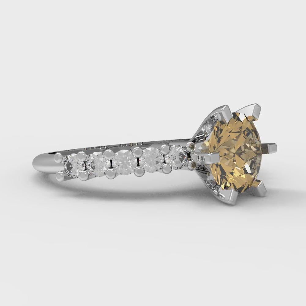 1.05 cttw Zirconia Simulated Champagne Diamond Solitaire with Zirconia Simulated Diamond Accents Engagement Ring - Solid Gold (VVS1, Round Cut,6.0mm)