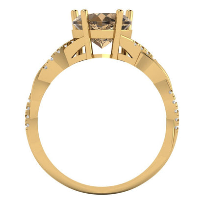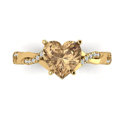 2.1 cttw Zirconia Simulated Champagne Diamond Solitaire with Zirconia Simulated Diamond Accents Engagement Ring - Solid Gold (VVS1, Heart Cut,8mm)