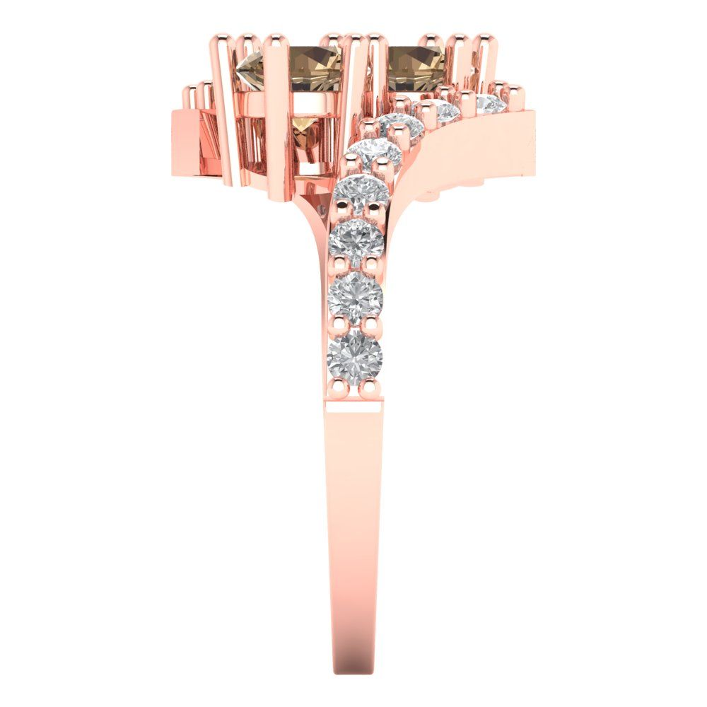 1.48 cttw Zirconia Simulated Champagne Diamond Solitaire with Zirconia Simulated Diamond Accents Engagement Ring - Solid Gold (VVS1, Round Cut,5mm)