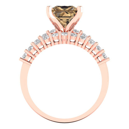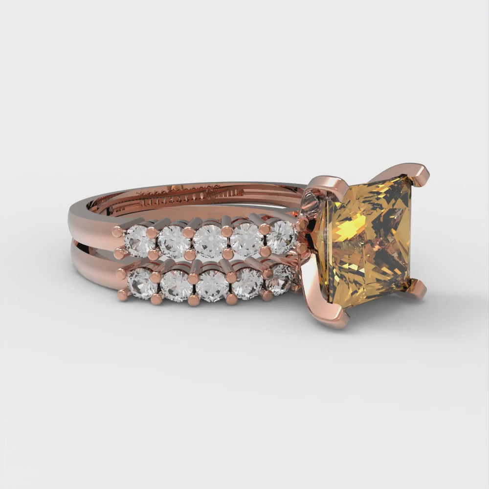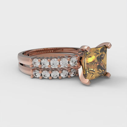 2.63 cttw Princess Cut Simulated Champagne Diamond Bridal Set - Solid Rose Gold Engagement Ring & Wedding Band