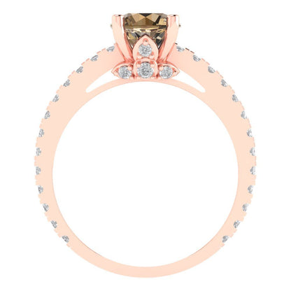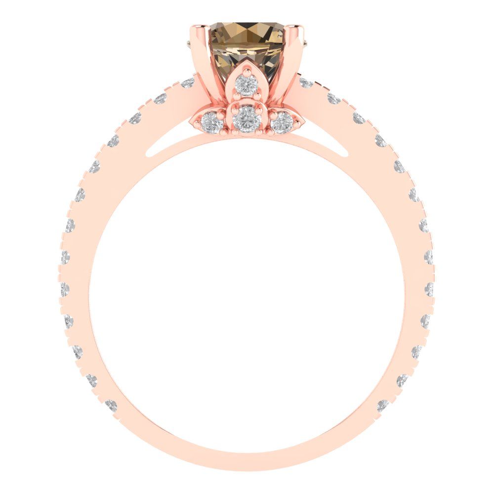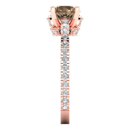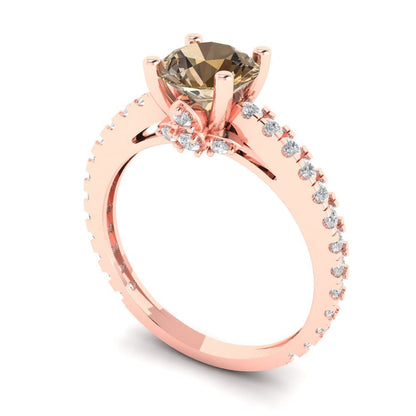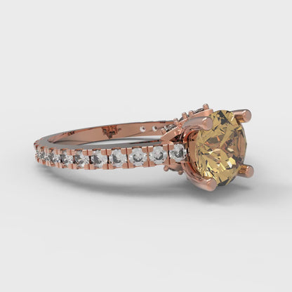 1.465 cttw Zirconia Simulated Champagne Diamond Solitaire with Zirconia Simulated Diamond Accents Engagement Ring - Solid Gold (VVS1, Round Cut,6.5mm)